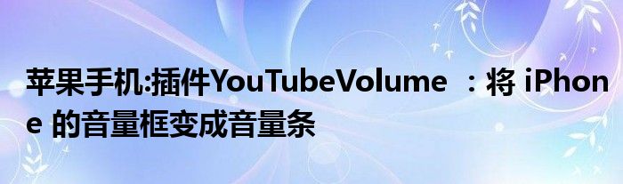 如今使用IT數碼設備的小伙伴們是越來越多了,那么IT數碼設備當中是有很多知識的,這些知識很多小伙伴一般都是不知道的,就好比最近就有很多小伙伴們想要知道插件YouTubeVolume :將 iPhone 的音量框變成音量條,那么既然現在大家對于插件YouTubeVolume :將 iPhone 的音量框變成音量條都感興趣,小編就來給大家分享下關于插件YouTubeVolume :將 iPhone 的音量框變成音量條的一些信息吧。