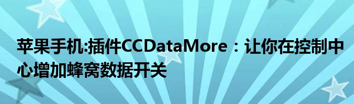 如今使用IT數碼設備的小伙伴們是越來越多了,那么IT數碼設備當中是有很多知識的,這些知識很多小伙伴一般都是不知道的,就好比最近就有很多小伙伴們想要知道插件CCDataMore:讓你在控制中心增加蜂窩數據開關,那么既然現在大家對于插件CCDataMore:讓你在控制中心增加蜂窩數據開關都感興趣,小編就來給大家分享下關于插件CCDataMore:讓你在控制中心增加蜂窩數據開關的一些信息吧。