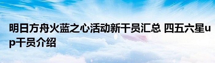 以上就是明日方舟火藍之心活動新干員匯總的全部內容,不知道各位親愛的小伙伴是否掌握了呢?祝愿大家都能單抽出奇跡,一發入老婆!希望能提供些幫助!如果還有其他疑問,歡迎訪問當游網的相關文章。