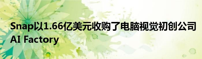 據報道,Snap Inc.以1.66億美元收購了AI Factory Inc.,這是一家擁有兩年時間、生產計算機視覺和視頻分析軟件的初創企業。