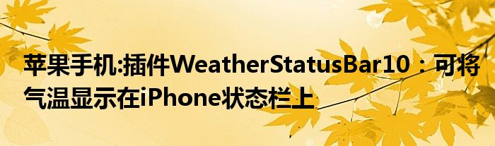 如今使用IT數(shù)碼設(shè)備的小伙伴們是越來越多了,那么IT數(shù)碼設(shè)備當(dāng)中是有很多知識的,這些知識很多小伙伴一般都是不知道的,就好比最近就有很多小伙伴們想要知道插件WeatherStatusBar10:可將氣溫顯示在iPhone狀態(tài)欄上,那么既然現(xiàn)在大家對于插件WeatherStatusBar10:可將氣溫顯示在iPhone狀態(tài)欄上都感興趣,小編就來給大家分享下關(guān)于插件WeatherStatusBar10:可將氣溫顯示在iPhone狀態(tài)欄上的一些信息吧。