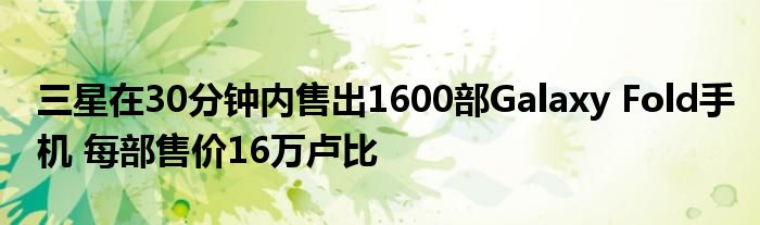 三星最新推出的Galaxy Fold在豪華智能手機領域創造了新紀錄。三星Galaxy Fold高級手機于上周五正式在線商店開通預訂后,該公司在30分鐘內共售出1600部。