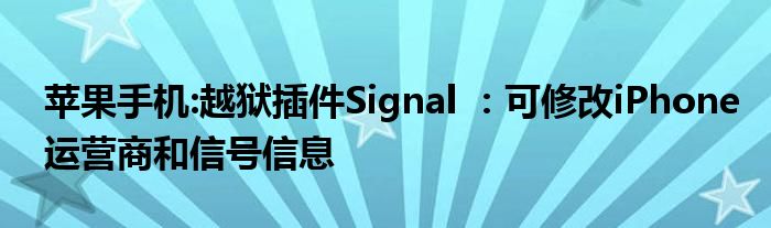 如今使用IT數碼設備的小伙伴們是越來越多了,那么IT數碼設備當中是有很多知識的,這些知識很多小伙伴一般都是不知道的,就好比最近就有很多小伙伴們想要知道越獄插件Signal :可修改iPhone運營商和信號信息,那么既然現在大家對于越獄插件Signal :可修改iPhone運營商和信號信息都感興趣,小編就來給大家分享下關于越獄插件Signal :可修改iPhone運營商和信號信息的一些信息吧。