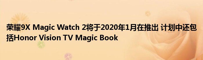 Honor 9X和Honor Magic Watch 2將于2020年1月在推出