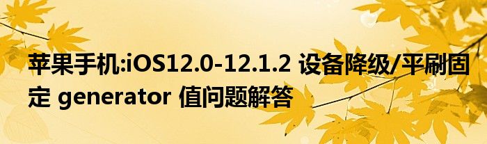 如今使用IT數(shù)碼設(shè)備的小伙伴們是越來越多了,那么IT數(shù)碼設(shè)備當(dāng)中是有很多知識(shí)的,這些知識(shí)很多小伙伴一般都是不知道的,就好比最近就有很多小伙伴們想要知道iOS12.0-12.1.2 設(shè)備降級(jí)/平刷固定 generator 值問題解答,那么既然現(xiàn)在大家對(duì)于iOS12.0-12.1.2 設(shè)備降級(jí)/平刷固定 generator 值問題解答都感興趣,小編就來給大家分享下關(guān)于iOS12.0-12.1.2 設(shè)備降級(jí)/平刷固定 generator 值問題解答的一些信息吧。