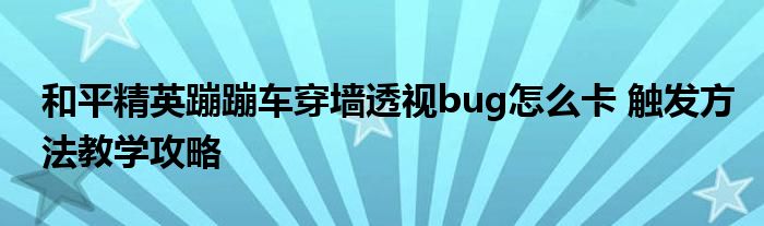以上就是和平精英蹦蹦車穿墻透視bug怎么卡的全部內容,不知道各位親愛的小伙伴是否掌握了呢?希望能提供些幫助!如果還有其他疑問,歡迎訪問當游網的相關文章。