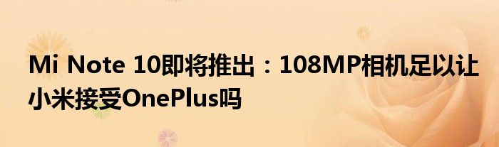 “ Mi Note 10配備108MP五鏡頭相機設置,將在推出,預計價格將超過30,000盧比,因為小米希望再次采用OnePlus。”