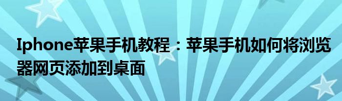 如今使用蘋果手機的小伙伴們是越來越多了,那么蘋果手機當中是有很多小技巧的,這些技巧很多小伙伴一般都是不知道如何來實用的,就好比最近就有很多小伙伴們想要知道蘋果手機如何將瀏覽器網頁添加到桌面 ,那么既然現在大家對于蘋果手機如何將瀏覽器網頁添加到桌面 都感興趣,小編就來給大家分享下關于蘋果手機如何將瀏覽器網頁添加到桌面 的一些信息吧。