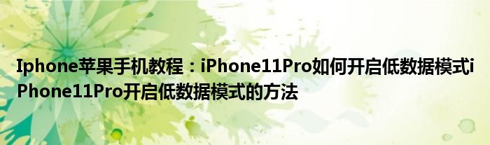 如今使用蘋果手機的小伙伴們是越來越多了,那么蘋果手機當中是有很多小技巧的,這些技巧很多小伙伴一般都是不知道如何來實用的,就好比最近就有很多小伙伴們想要知道iPhone11Pro如何開啟低數據模式iPhone11Pro開啟低數據模式的方法,那么既然現在大家對于iPhone11Pro如何開啟低數據模式iPhone11Pro開啟低數據模式的方法都感興趣,小編就來給大家分享下關于iPhone11Pro如何開啟低數據模式iPhone11Pro開啟低數據模式的方法的一些信息吧。