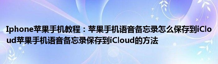 如今使用蘋果手機的小伙伴們是越來越多了,那么蘋果手機當中是有很多小技巧的,這些技巧很多小伙伴一般都是不知道如何來實用的,就好比最近就有很多小伙伴們想要知道蘋果手機語音備忘錄怎么保存到iCloud蘋果手機語音備忘錄保存到iCloud的方法,那么既然現在大家對于蘋果手機語音備忘錄怎么保存到iCloud蘋果手機語音備忘錄保存到iCloud的方法都感興趣,小編就來給大家分享下關于蘋果手機語音備忘錄怎么保存到iCloud蘋果手機語音備忘錄保存到iCloud的方法的一些信息吧。