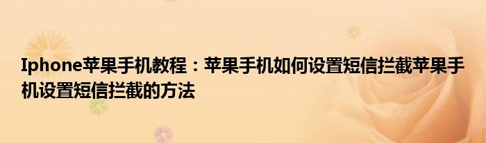 如今使用蘋果手機的小伙伴們是越來越多了,那么蘋果手機當中是有很多小技巧的,這些技巧很多小伙伴一般都是不知道如何來實用的,就好比最近就有很多小伙伴們想要知道蘋果手機如何設置短信攔截蘋果手機設置短信攔截的方法,那么既然現在大家對于蘋果手機如何設置短信攔截蘋果手機設置短信攔截的方法都感興趣,小編就來給大家分享下關于蘋果手機如何設置短信攔截蘋果手機設置短信攔截的方法的一些信息吧。
