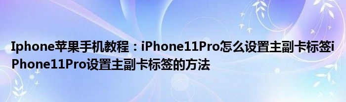 如今使用蘋果手機(jī)的小伙伴們是越來越多了,那么蘋果手機(jī)當(dāng)中是有很多小技巧的,這些技巧很多小伙伴一般都是不知道如何來實用的,就好比最近就有很多小伙伴們想要知道iPhone11Pro怎么設(shè)置主副卡標(biāo)簽iPhone11Pro設(shè)置主副卡標(biāo)簽的方法,那么既然現(xiàn)在大家對于iPhone11Pro怎么設(shè)置主副卡標(biāo)簽iPhone11Pro設(shè)置主副卡標(biāo)簽的方法都感興趣,小編就來給大家分享下關(guān)于iPhone11Pro怎么設(shè)置主副卡標(biāo)簽iPhone11Pro設(shè)置主副卡標(biāo)簽的方法的一些信息吧。