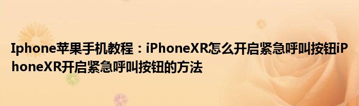 如今使用蘋果手機的小伙伴們是越來越多了,那么蘋果手機當中是有很多小技巧的,這些技巧很多小伙伴一般都是不知道如何來實用的,就好比最近就有很多小伙伴們想要知道iPhoneXR怎么開啟緊急呼叫按鈕iPhoneXR開啟緊急呼叫按鈕的方法,那么既然現在大家對于iPhoneXR怎么開啟緊急呼叫按鈕iPhoneXR開啟緊急呼叫按鈕的方法都感興趣,小編就來給大家分享下關于iPhoneXR怎么開啟緊急呼叫按鈕iPhoneXR開啟緊急呼叫按鈕的方法的一些信息吧。