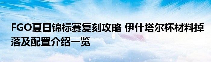 以上就是關于FGO伊什塔爾杯材料掉落及配置介紹一覽,小伙伴們你可以根據以上方法來參與活動,希望以上攻略能給玩家們帶來一定的幫助,關于更多FGO活動攻略請關注當游網。