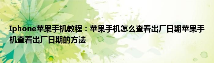 如今使用蘋果手機的小伙伴們是越來越多了,那么蘋果手機當中是有很多小技巧的,這些技巧很多小伙伴一般都是不知道如何來實用的,就好比最近就有很多小伙伴們想要知道蘋果手機怎么查看出廠日期蘋果手機查看出廠日期的方法,那么既然現在大家對于蘋果手機怎么查看出廠日期蘋果手機查看出廠日期的方法都感興趣,小編就來給大家分享下關于蘋果手機怎么查看出廠日期蘋果手機查看出廠日期的方法的一些信息吧。