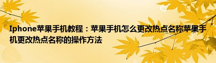 如今使用蘋果手機的小伙伴們是越來越多了,那么蘋果手機當中是有很多小技巧的,這些技巧很多小伙伴一般都是不知道如何來實用的,就好比最近就有很多小伙伴們想要知道蘋果手機怎么更改熱點名稱蘋果手機更改熱點名稱的操作方法,那么既然現在大家對于蘋果手機怎么更改熱點名稱蘋果手機更改熱點名稱的操作方法都感興趣,小編就來給大家分享下關于蘋果手機怎么更改熱點名稱蘋果手機更改熱點名稱的操作方法的一些信息吧。