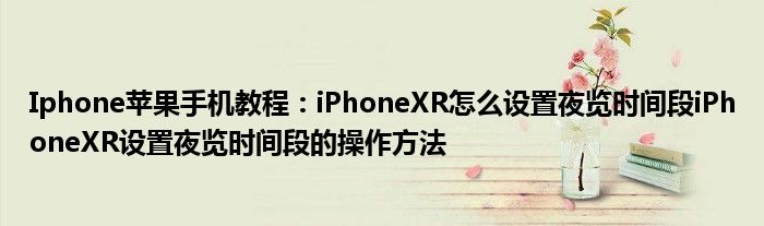 如今使用蘋果手機的小伙伴們是越來越多了,那么蘋果手機當中是有很多小技巧的,這些技巧很多小伙伴一般都是不知道如何來實用的,就好比最近就有很多小伙伴們想要知道iPhoneXR怎么設置夜覽時間段iPhoneXR設置夜覽時間段的操作方法,那么既然現在大家對于iPhoneXR怎么設置夜覽時間段iPhoneXR設置夜覽時間段的操作方法都感興趣,小編就來給大家分享下關于iPhoneXR怎么設置夜覽時間段iPhoneXR設置夜覽時間段的操作方法的一些信息吧。