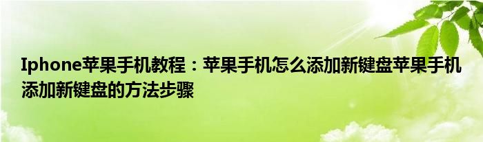 如今使用蘋果手機的小伙伴們是越來越多了,那么蘋果手機當中是有很多小技巧的,這些技巧很多小伙伴一般都是不知道如何來實用的,就好比最近就有很多小伙伴們想要知道蘋果手機怎么添加新鍵盤蘋果手機添加新鍵盤的方法步驟,那么既然現在大家對于蘋果手機怎么添加新鍵盤蘋果手機添加新鍵盤的方法步驟都感興趣,小編就來給大家分享下關于蘋果手機怎么添加新鍵盤蘋果手機添加新鍵盤的方法步驟的一些信息吧。