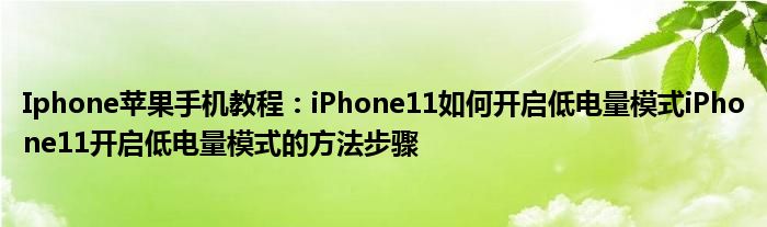 如今使用蘋果手機(jī)的小伙伴們是越來越多了,那么蘋果手機(jī)當(dāng)中是有很多小技巧的,這些技巧很多小伙伴一般都是不知道如何來實(shí)用的,就好比最近就有很多小伙伴們想要知道iPhone11如何開啟低電量模式iPhone11開啟低電量模式的方法步驟,那么既然現(xiàn)在大家對(duì)于iPhone11如何開啟低電量模式iPhone11開啟低電量模式的方法步驟都感興趣,小編就來給大家分享下關(guān)于iPhone11如何開啟低電量模式iPhone11開啟低電量模式的方法步驟的一些信息吧。
