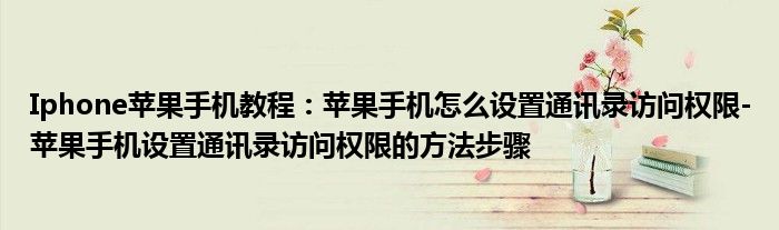 如今使用蘋果手機的小伙伴們是越來越多了,那么蘋果手機當中是有很多小技巧的,這些技巧很多小伙伴一般都是不知道如何來實用的,就好比最近就有很多小伙伴們想要知道蘋果手機怎么設置通訊錄訪問權限-蘋果手機設置通訊錄訪問權限的方法步驟 ,那么既然現在大家對于蘋果手機怎么設置通訊錄訪問權限-蘋果手機設置通訊錄訪問權限的方法步驟 都感興趣,小編就來給大家分享下關于蘋果手機怎么設置通訊錄訪問權限-蘋果手機設置通訊錄訪問權限的方法步驟 的一些信息吧。