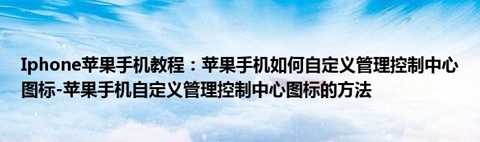 如今使用蘋果手機的小伙伴們是越來越多了,那么蘋果手機當中是有很多小技巧的,這些技巧很多小伙伴一般都是不知道如何來實用的,就好比最近就有很多小伙伴們想要知道蘋果手機如何自定義管理控制中心圖標-蘋果手機自定義管理控制中心圖標的方法 ,那么既然現在大家對于蘋果手機如何自定義管理控制中心圖標-蘋果手機自定義管理控制中心圖標的方法 都感興趣,小編就來給大家分享下關于蘋果手機如何自定義管理控制中心圖標-蘋果手機自定義管理控制中心圖標的方法 的一些信息吧。