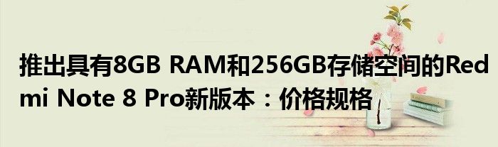 “新的8GB + 256GB版本的Redmi Note 8 Pro價格為人民幣1,899元(約合20,000盧比),但尚未發布。”