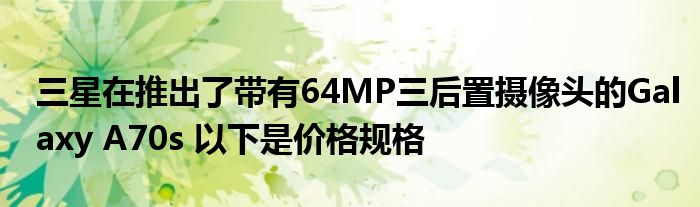 “ Galaxy A70s是三星首款采用64像素分辨率的ISOCELL Bright GW1傳感器的智能手機(jī)”