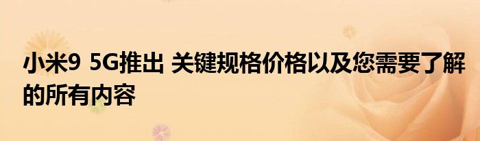 Mi 9 5G配備了6.39英寸fullHD + AMOLED顯示屏。該智能手機配有4000毫安時的大容量電池,可進行40W有線快速充電和30W無線快速充電。Mi 9 5G還支持高達10W的反向充電。在軟件方面,小米9 5G運行基于Android 9 Pie的MIUI 11。