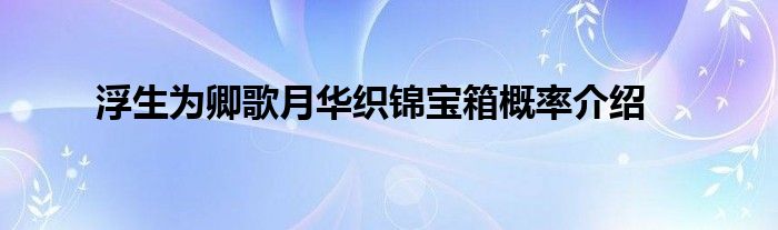 在浮生為卿歌手游中月華織錦寶箱是一個抽獎用的箱子,不少玩家對寶箱的出貨概率非常的關心,下面就讓小編來告訴大家浮生為卿歌月華織錦寶箱概率介紹,感興趣的不要錯過哦。