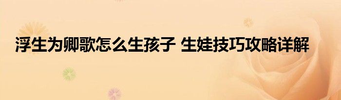 在浮生為卿歌手游中,觸發一定的條件是可以生孩子的,不過不少玩家都不太清楚生孩子的技巧什么,下面就讓小編來告訴大家浮生為卿歌生孩子攻略詳解,感興趣的不要錯過哦。
