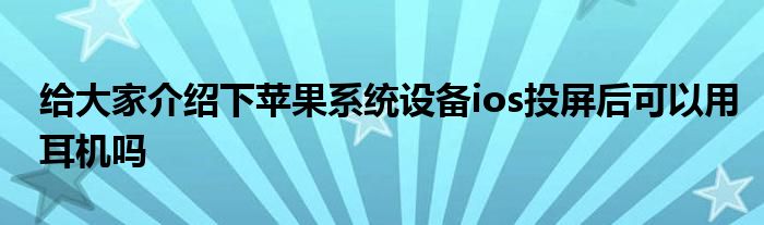 最近堯哥發現有諸多的小伙伴們對于蘋果系統設備ios投屏后可以用耳機嗎這個問題都頗為感興趣的,大家也都想要及時了解到蘋果系統設備ios投屏后可以用耳機嗎相關信息,那么堯哥今天就來為大家梳理下具體的關于這個問題的一些消息吧。