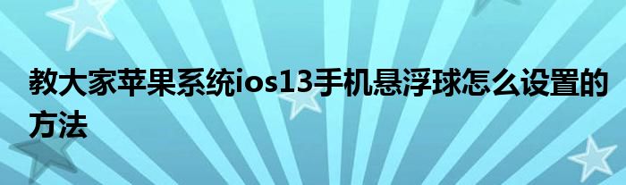 最近堯哥發現有諸多的小伙伴們對于蘋果系統ios13手機懸浮球怎么設置的方法這個問題都頗為感興趣的,大家也都想要及時了解到蘋果系統ios13手機懸浮球怎么設置的方法相關信息,那么堯哥今天就來為大家梳理下具體的關于這個問題的一些消息吧。