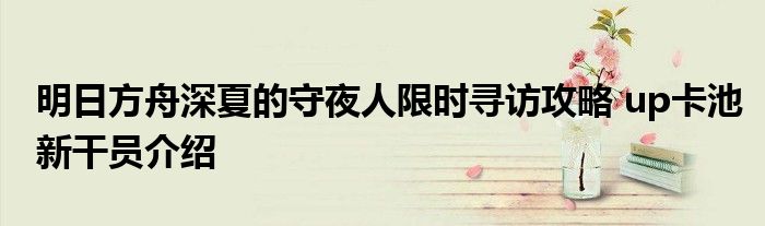 在明日方舟里,火藍之心音樂活動將上線兩個全新的尋訪卡池,都是全新的干員限時up,其中之一深夏的守夜人尋訪卡池,下面就為大家帶來詳細的攻略介紹,感興趣的話就不要錯過哦!