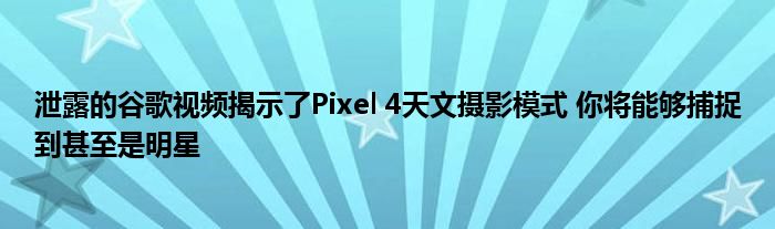 您可能不必等到今年秋天才能看到Pixel 4是否包含天文攝影模式。與行業規范不同,谷歌在今年晚些時候的手機官方展示之前就已經分享了有關Pixel 4的信息。