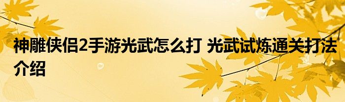 以上就是神雕俠侶2手游光武怎么打的內容,希望對大家有所幫助,更多神雕俠侶2游戲相關的攻略,請持續關注當游網。