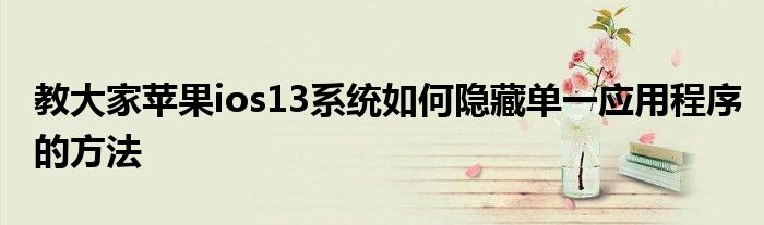 最近堯哥發現有諸多的小伙伴們對于蘋果ios13系統如何隱藏單一應用程序的方法這個問題都頗為感興趣的,大家也都想要及時了解到蘋果ios13系統如何隱藏單一應用程序的方法相關信息,那么堯哥今天就來為大家梳理下具體的關于這個問題的一些消息吧。