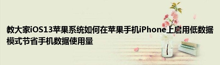 通過以上的方法就可以輕松解決iOS13蘋果系統如何在蘋果手機iPhone上啟用低數據模式節省手機數據使用量,當然如果大家還有其他更好的方法能夠解決這個問題,也歡迎大家投稿來進行分享。
