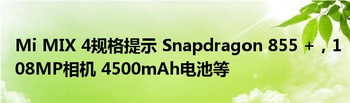 所謂的Mi MIX 4規范已經被社交網絡平臺微博上的一名泄密者傾斜。一些泄露的Mi MIX 4規格符合預期的規格,例如Snapdragon 855+處理器,108MP主后置攝像頭,12GB RAM,高達1TB存儲和UFS 3.0閃存。但是,還有一些值得關注的細節,例如4,500mAh電池,45W有線快速充電和30W無線快速充電,音頻插孔和板載MIUI 11自定義操作系統。Mi MIX 4顯示器也傾斜到2K分辨率,兩側彎曲,而身體則稱為陶瓷。