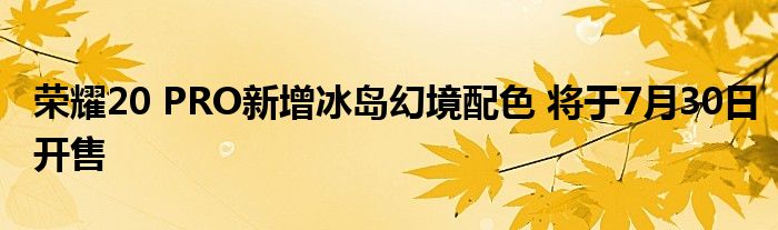 7月23日消息 據熱心網友投稿,華為商城官網消息,榮耀20 PRO新增冰島幻境配色,將于7月30日10:08開售。