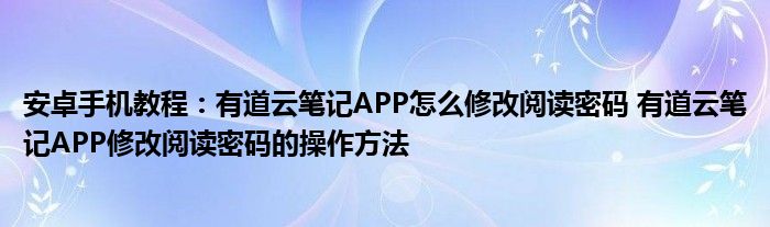 如今使用安卓手機(jī)的小伙伴們是越來越多了,那么安卓手機(jī)當(dāng)中是有很多小技巧的,這些技巧很多小伙伴一般都是不知道如何來實(shí)用的,就好比最近就有很多小伙伴們想要知道有道云筆記APP怎么修改閱讀密碼 有道云筆記APP修改閱讀密碼的操作方法 ,那么既然現(xiàn)在大家對(duì)于有道云筆記APP怎么修改閱讀密碼 有道云筆記APP修改閱讀密碼的操作方法 都感興趣,小編就來給大家分享下關(guān)于有道云筆記APP怎么修改閱讀密碼 有道云筆記APP修改閱讀密碼的操作方法 的一些信息吧。