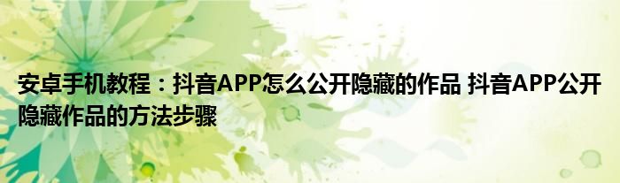 如今使用安卓手機(jī)的小伙伴們是越來越多了,那么安卓手機(jī)當(dāng)中是有很多小技巧的,這些技巧很多小伙伴一般都是不知道如何來實(shí)用的,就好比最近就有很多小伙伴們想要知道抖音APP怎么公開隱藏的作品 抖音APP公開隱藏作品的方法步驟 ,那么既然現(xiàn)在大家對(duì)于抖音APP怎么公開隱藏的作品 抖音APP公開隱藏作品的方法步驟 都感興趣,小編就來給大家分享下關(guān)于抖音APP怎么公開隱藏的作品 抖音APP公開隱藏作品的方法步驟 的一些信息吧。