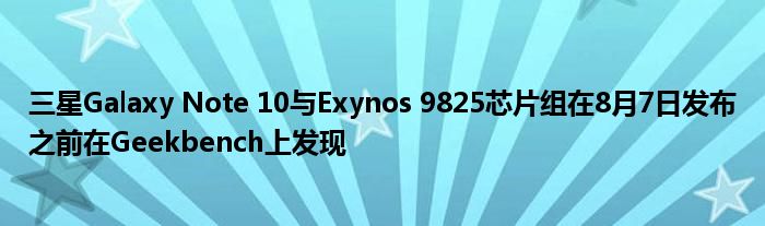 三星Galaxy Note 10將于8月7日在紐約公司的Unpacked活動上推出。下一個Note旗艦產品已經出現了好幾周的消息,傳言和報道都在關注其設計以及我們對硬件的期望。雖然許多人認為Galaxy Note 10自然會采用為Galaxy S10提供動力的Exynos 9820芯片組,但有報道稱有一款新的和更新的Exynos 9825可以為Galaxy Note 10提供動力。現在看來幾乎可以肯定Galaxy Note 10再次在Geekbench上發現了Exynos 9825處理器。