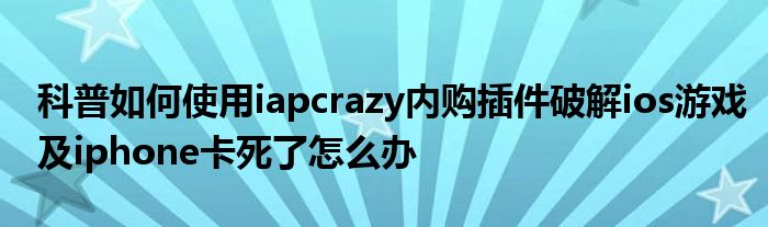 A8:IAPCrazy會和同樣功能的內購破解插件沖突,以至內購失敗。請同時只開啟一個內購破解插件。例如Localiapstore,iapfree