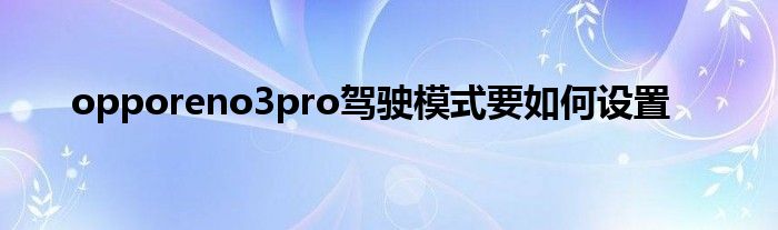 以上就是關于opporeno3pro怎么設置駕駛模式這方面的小知識了,希望對有需要的小伙伴有所幫助。