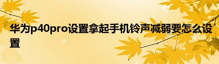 以上就是關于華為p40pro拿起手機鈴聲減弱怎么設置這方面的小知識了,希望對有需要的小伙伴有所幫助。