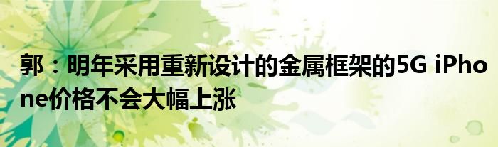 在MacRumors觀察的TF International Securities的研究報告中,郭說,蘋果反而旨在通過減少其供應鏈費用來抵消5G成本,這可能包括向重新設計的金屬底盤和框架供應商支付前期非經常性工程付款。適用于5G iPhone。