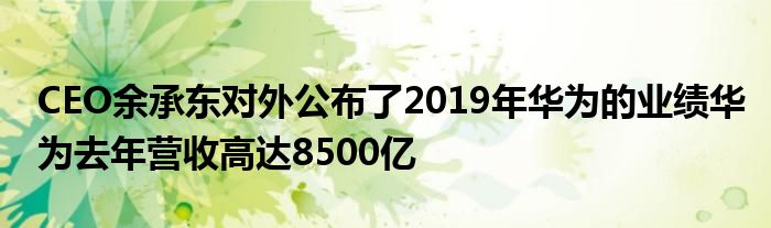關于到現在CEO余承東對外公布了2019年華為的業績華為去年營收高達8500億這個話題,相信很多小伙伴都是非常有興趣了解的吧,因為這個話題也是近期非常火熱的,那么既然現在大家都想要知道CEO余承東對外公布了2019年華為的業績華為去年營收高達8500億,小編也是到網上收集了一些與CEO余承東對外公布了2019年華為的業績華為去年營收高達8500億相關的信息,那么下面分享給大家一起了解下吧。