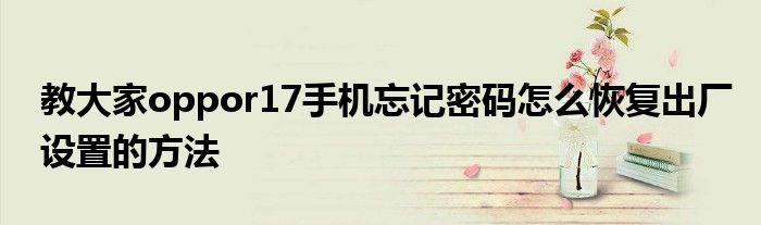 上述的關于oppor17手機忘記密碼怎么恢復出廠設置的方法就是這樣了,那么如果大家想要了解到更多關于oppor17手機忘記密碼怎么恢復出廠設置的方法的問題,可以聯系小編哦。