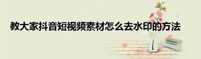 最近堯哥發現有諸多的小伙伴們對于抖音短視頻素材怎么去水印的方法這個問題都頗為感興趣的,大家也都想要及時了解到抖音短視頻素材怎么去水印的方法相關信息,那么堯哥今天就來為大家梳理下具體的關于這個問題的一些消息吧。