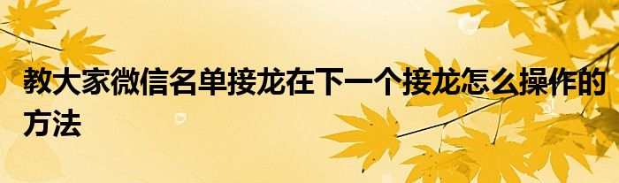 最近堯哥發現有諸多的小伙伴們對于微信名單接龍在下一個接龍怎么操作的方法這個問題都頗為感興趣的,大家也都想要及時了解到微信名單接龍在下一個接龍怎么操作的方法相關信息,那么堯哥今天就來為大家梳理下具體的關于這個問題的一些消息吧。